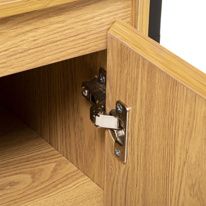 La colonne de salle de bain Tribecart dispose de deux parties. La première parte inférieure, en bas, dispose de trois niches et d’une porte montée sur charnières.