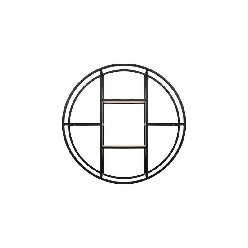 Etagère ronde à fixer au mur, en bois et métal.