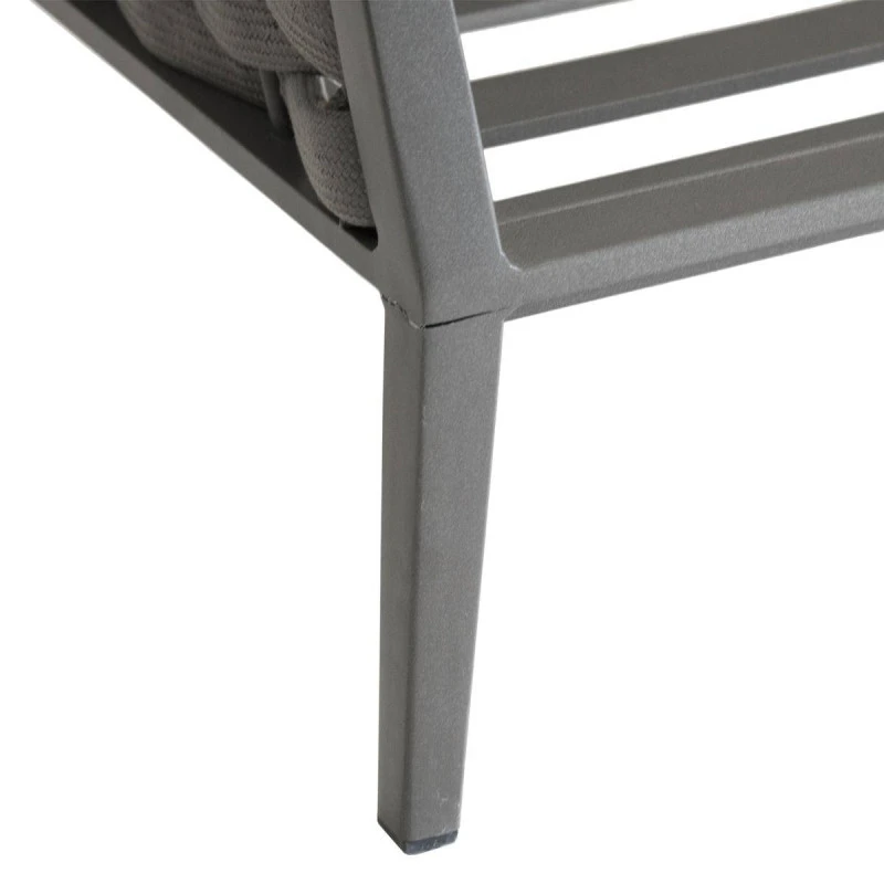 Elle est habillée de coussins en polyester déhoussables 240 g/m² coloris noisette traités déperlant.
